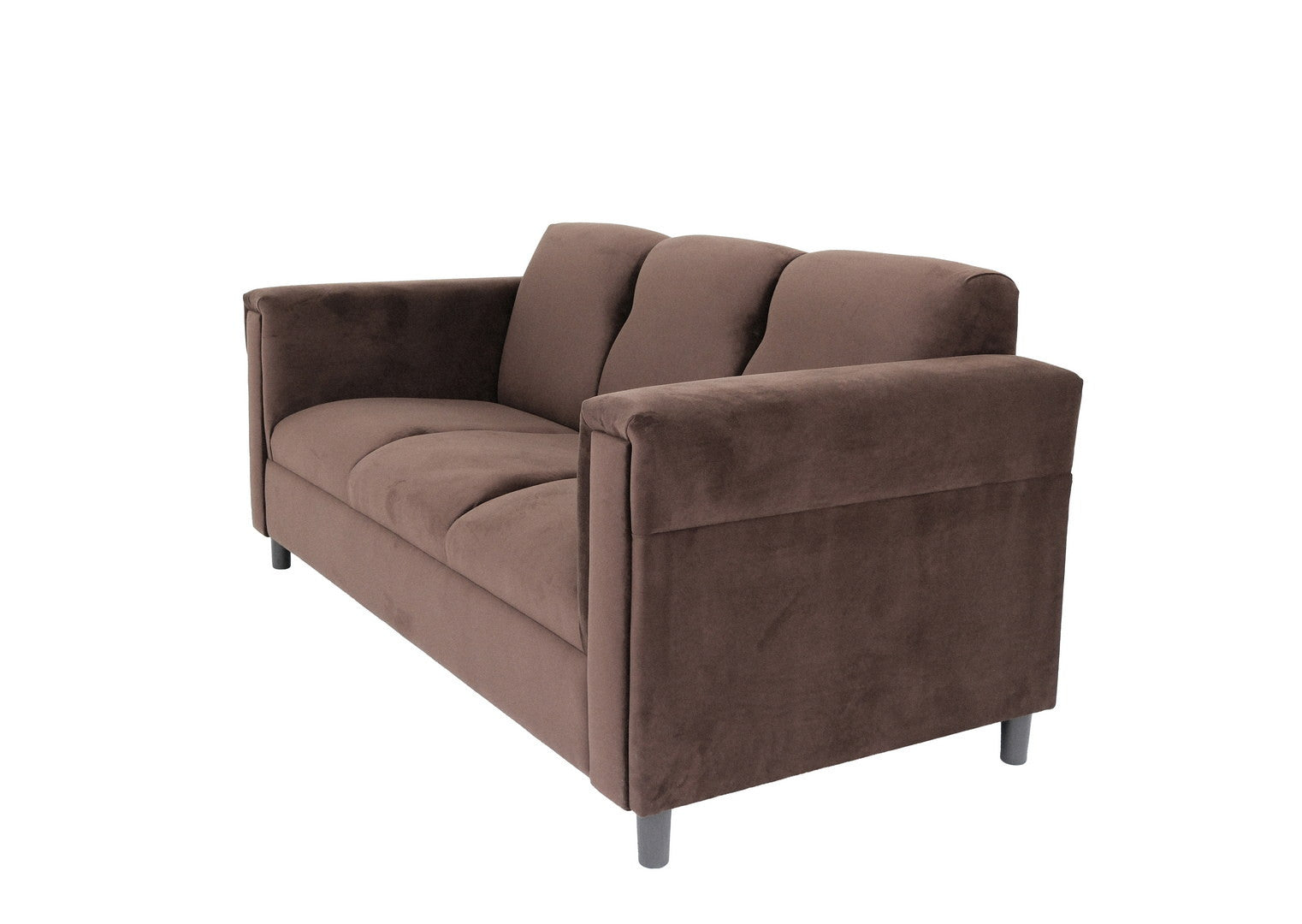 Transform your home's interior with this luxurious 72-inch dark brown suede sofa with black legs. Solid colors give you lots of decorative options and are easy to work into your decor scheme. Sinuous springs construction gives this piece strong support and makes it comfortable to sit even for long periods of time. Square arms offer a comfy place to rest. Black solid wood legs effortlessly elevate the room and add a touch of contemporary design. Built to last, this sofa will be a great centerpiece for your room. 25-inch H x 72-inch W x 34-inch D